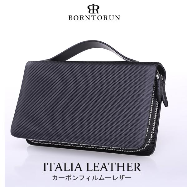 セカンドバッグ メンズ 革【送料無料】BORNTORUN ボントラン メンズ 財布 バッグ 革 皮 イタリア製カーボンレザー ダブルファスナー 財布機能付き 人気 ブランド ミニセカンド 牛革 牛皮 本革 本皮 カバン かばん レザー トラベルウォレット ビジネス バレンタイン