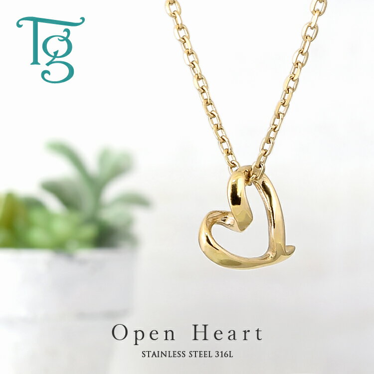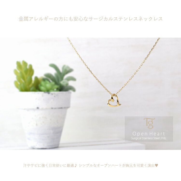 オープンハートネックレス 金属アレルギーの方でも安心なサージカルステンレス316L製 ローズゴールドカラー イエローゴールドカラー